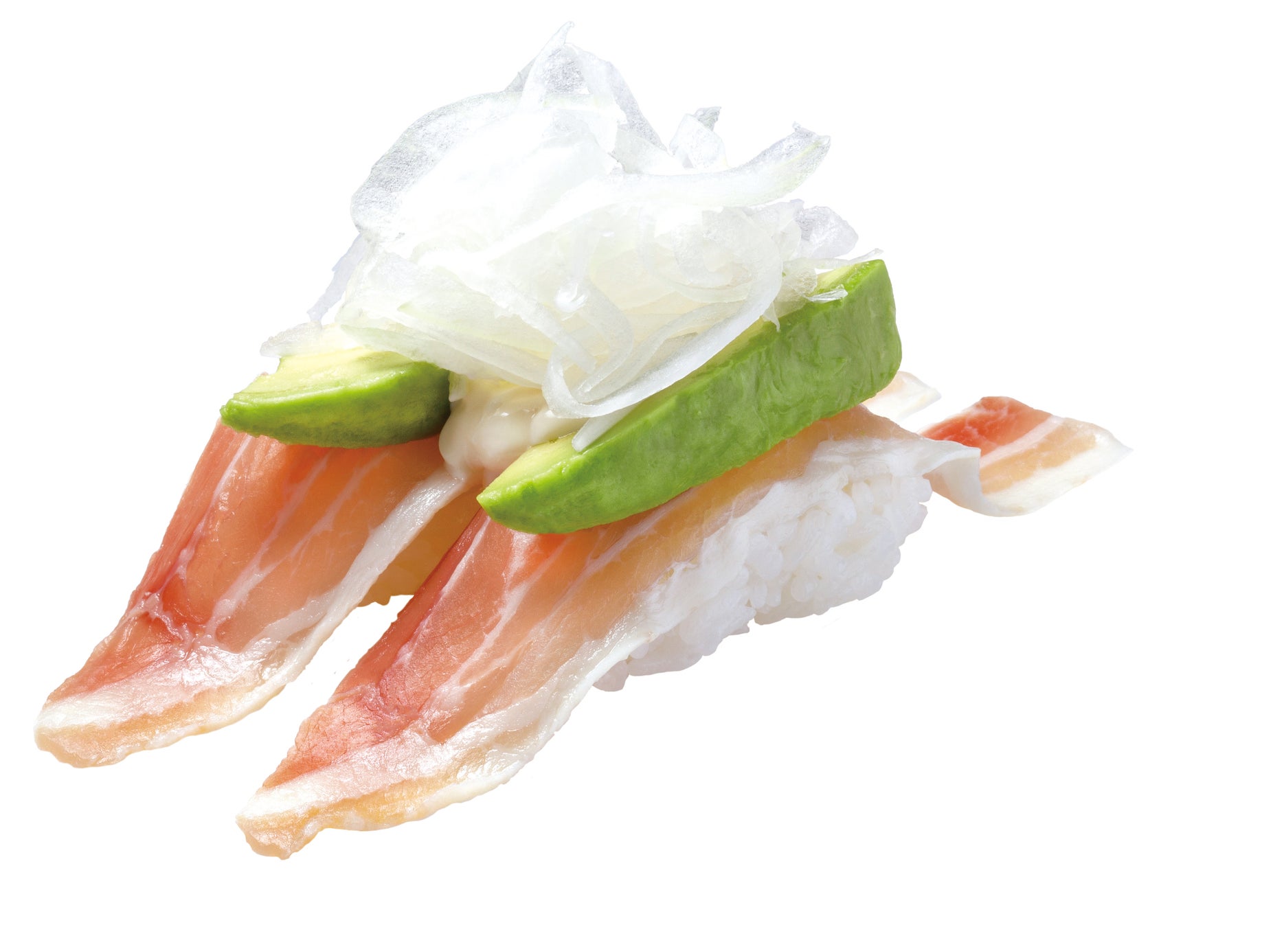 また、香ばしく炙った脂のりのよいサーモンをたっぷり堪能できる「山盛り 炙りとろサーモンつつみ」、身が締まっていて食べ応えのある「鹿児島県産 大切り活〆かんぱち」、瀬戸内海水塩を使った調味液に豚バラ肉を漬け込み燻製にした、旨みたっぷりのパンチェッタと、まろやかなアボカドがマッチする「アボカドパンチェッタ握り」も登場します。