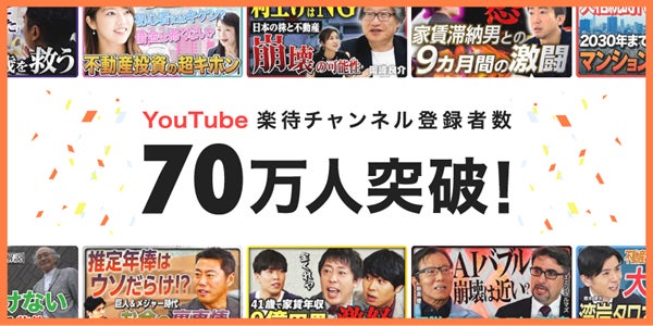 ・不動産投資の「楽待」が運営するYouTubeチャンネルの登録者数が70万人を突破