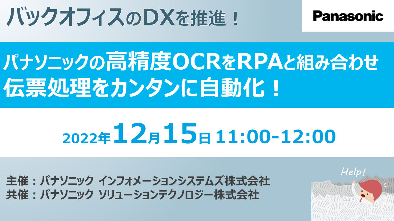 【ウェビナー】バックオフィスのDXを推進!パナソニックの高精度OCRをRPAと組み合わせ、伝票処理をカンタンに自動化! 12/15(木)