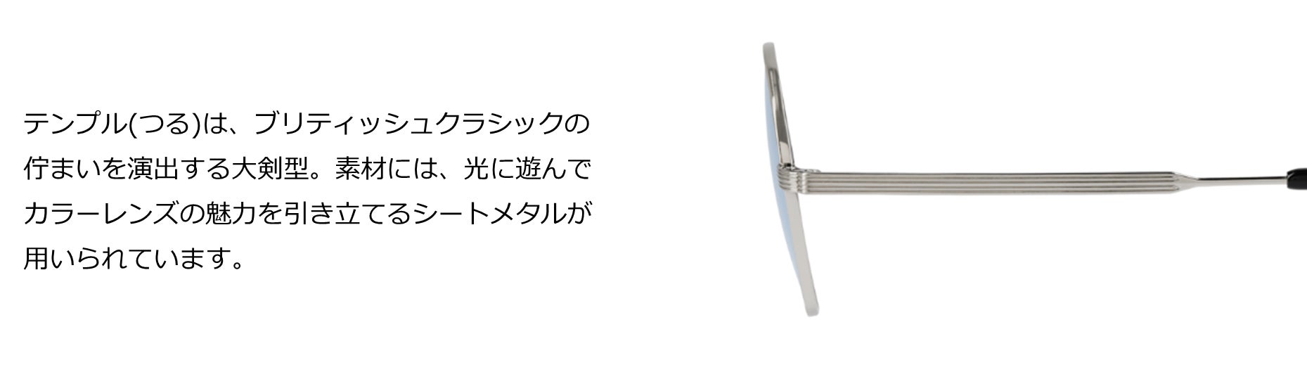 ブリティッシュクラシックの要素を散りばめたフレームとライトカラーレンズの組み合わせが、マスクと併用した顔にも感情溢れる物語性を演出します。