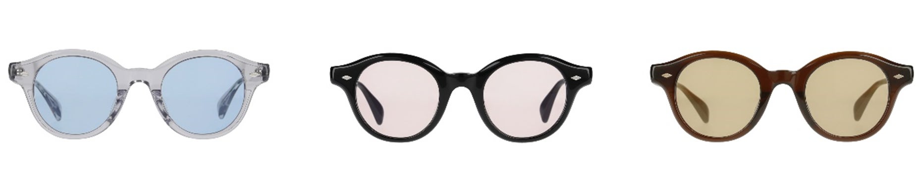 丸みをもたせたカットが滑らかな光の遊びを生む重厚な佇まいのブリティッシュクラシック・アセテートフレーム。レンズには、定番のブラウンや、英国を感じさせる色調のグラデーション、トレンドであるライトカラーのブルーやピンクが採用され、あなたの顔にシネマティックな表情を作り出します。