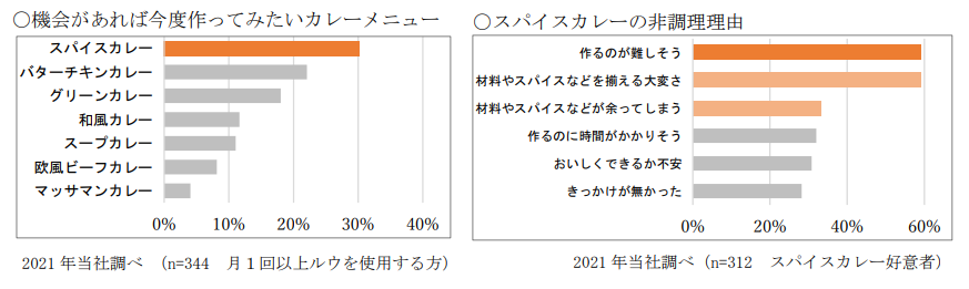 スパイスカレーは、内食需要の拡大やメディアでの紹介を背景に、作ってみたいカレーメニューの上位に挙げられています。一方で、様々なスパイスカレーのレシピ提案があるものの、「難しい」「手間がかかる」イメージが強いのが現状です。