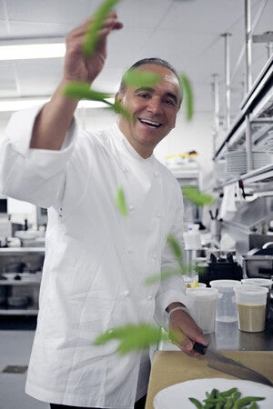 このミシュラン三つ星レストランでの経験を生かして、アジアに赴き、バンコクのオリエンタルホテル、シンガポールのマンダリンホテル、香港のマンダリンホテルでさらに経験を積みます。アジアで働き、旅をするなかで、東アジアの香り豊かな味に魅せられていきます。そして、伝統的な肉のブイヨンやクリームを使わず、野菜の水分やフルーツのエッセンス、軽やかなブイヨンやハーブのビネグレットソースなどを使用し、強烈な風味と 食感を創り出しました。アジアのスパイスのほかに、生姜・ワサビ・柚子・出汁など、日本食材を取入れているのも特徴です。1984 年に仕事で初めて日本を訪れ、はじめて生の魚を食べてカルチャーショックを受けるとともに、新鮮で滋養溢れる食材と、対照的な味で構成される日本料理に魅了されました。こうした経験から生み出された革新的な料理の数々は、世界中の食通を虜にさせています。