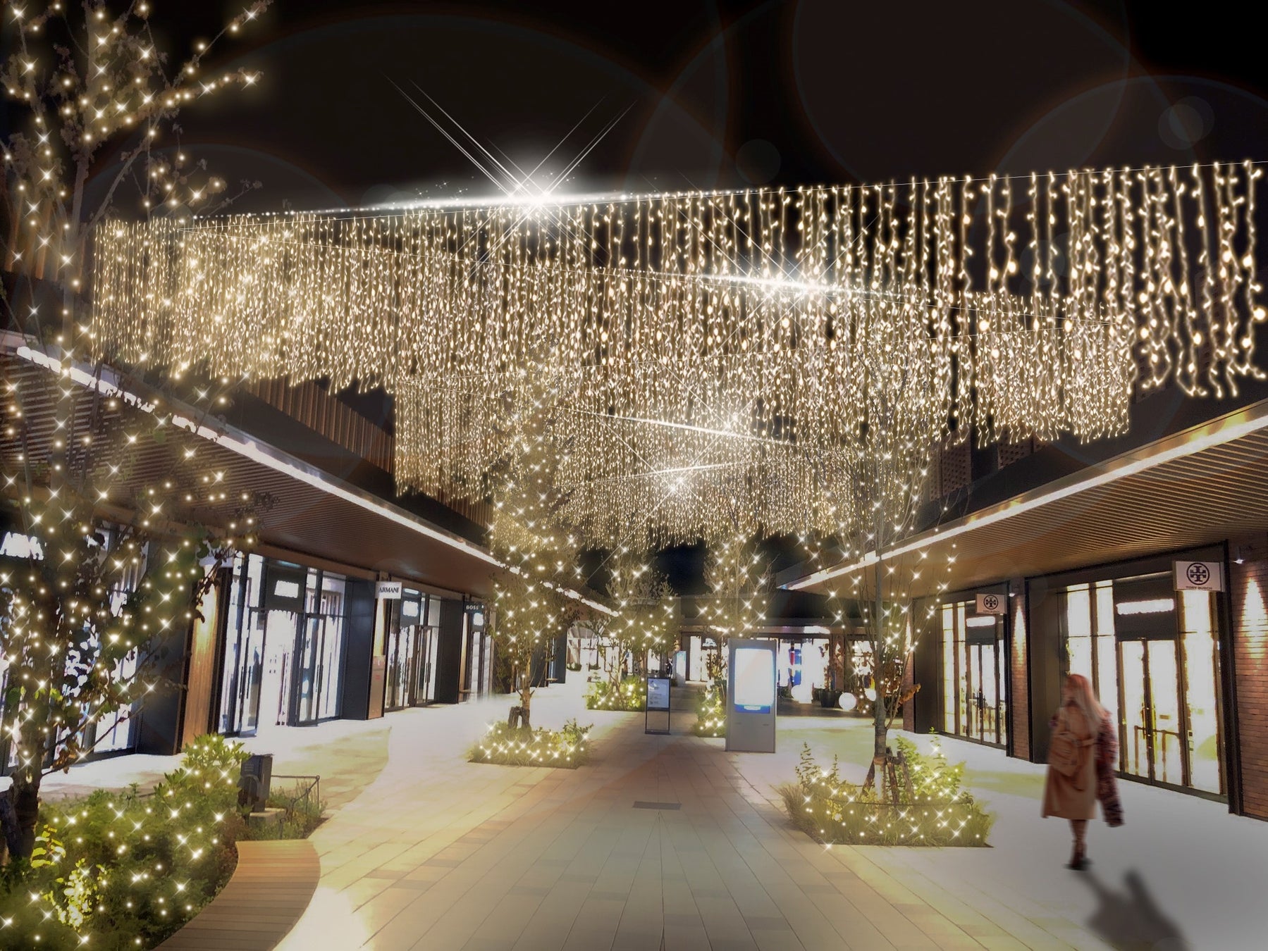 【光の演出がプレミアム・アウトレットの冬の夜を彩る ウィンターイルミネーション】
