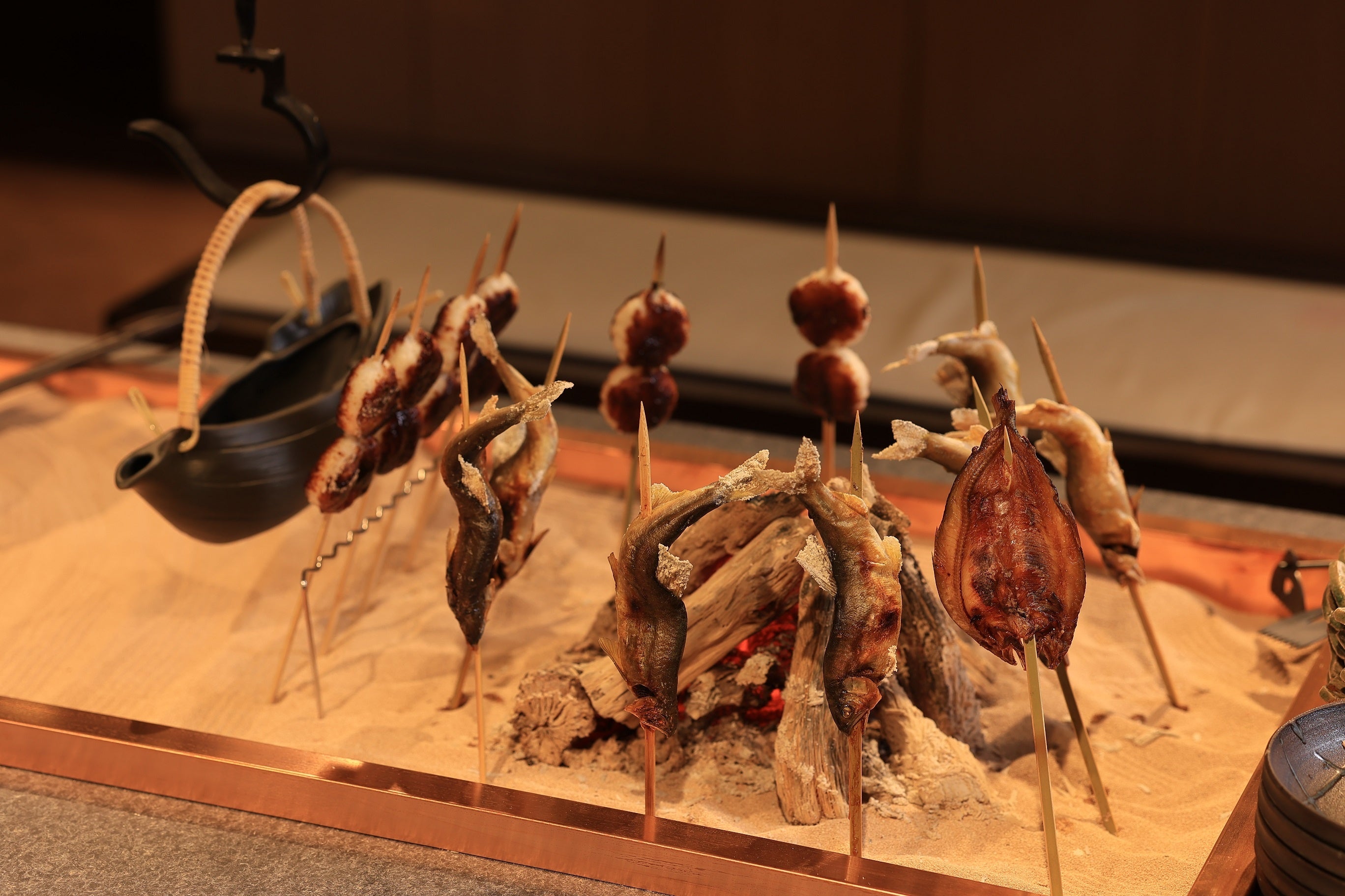 今回のリニューアルに際して、レストラン内には囲炉裏と茶台を新設。炭火で炙る五平餅や鮎の塩焼き、茶師が淹れる“美濃のいび茶”など、地元岐阜ならではの旬を体験するひとときをご提案します。