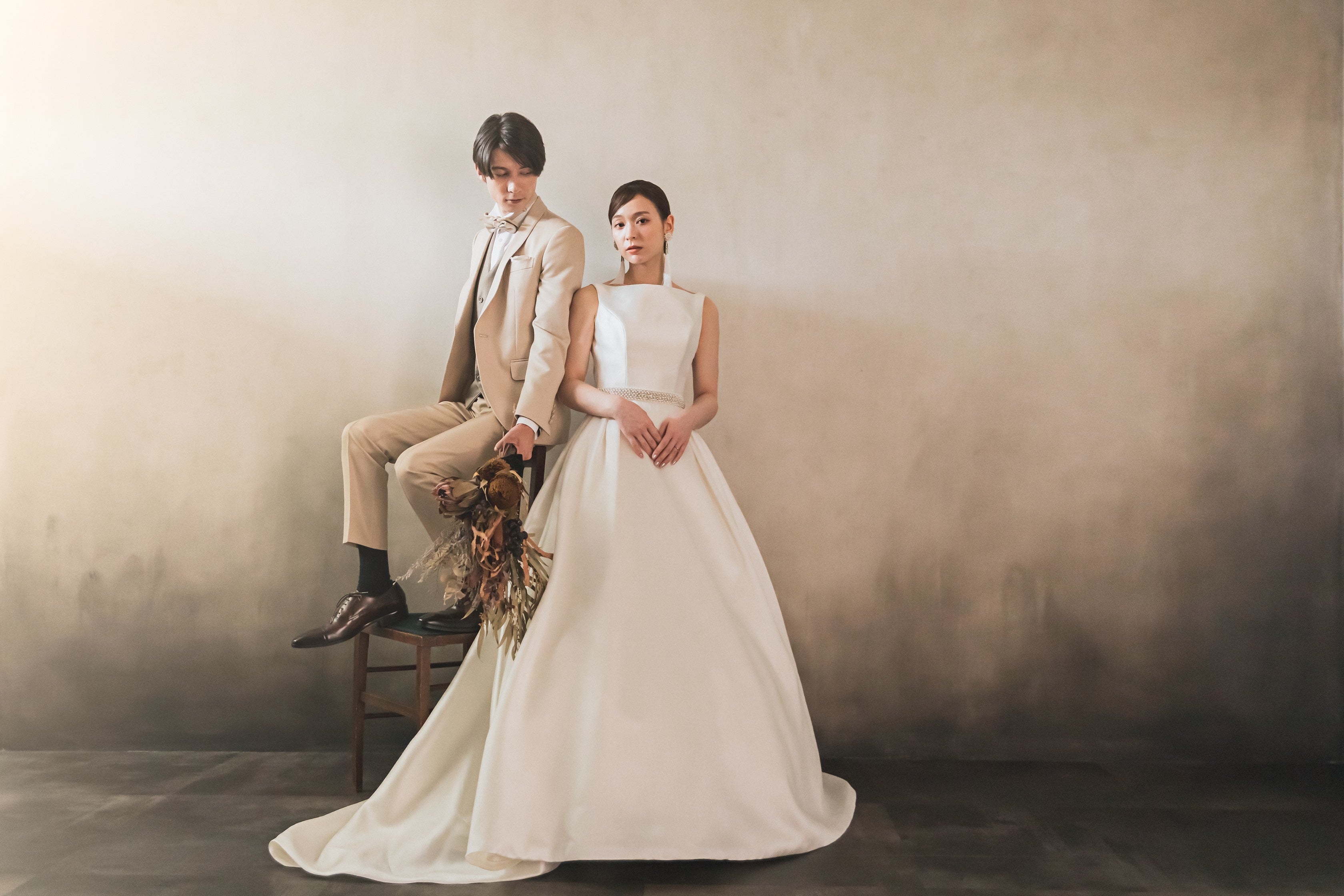 プラン内容:和装または洋装(新婦2着・新郎1着)、新婦ヘアセット・メイク、着付け、撮影データ100カット以上