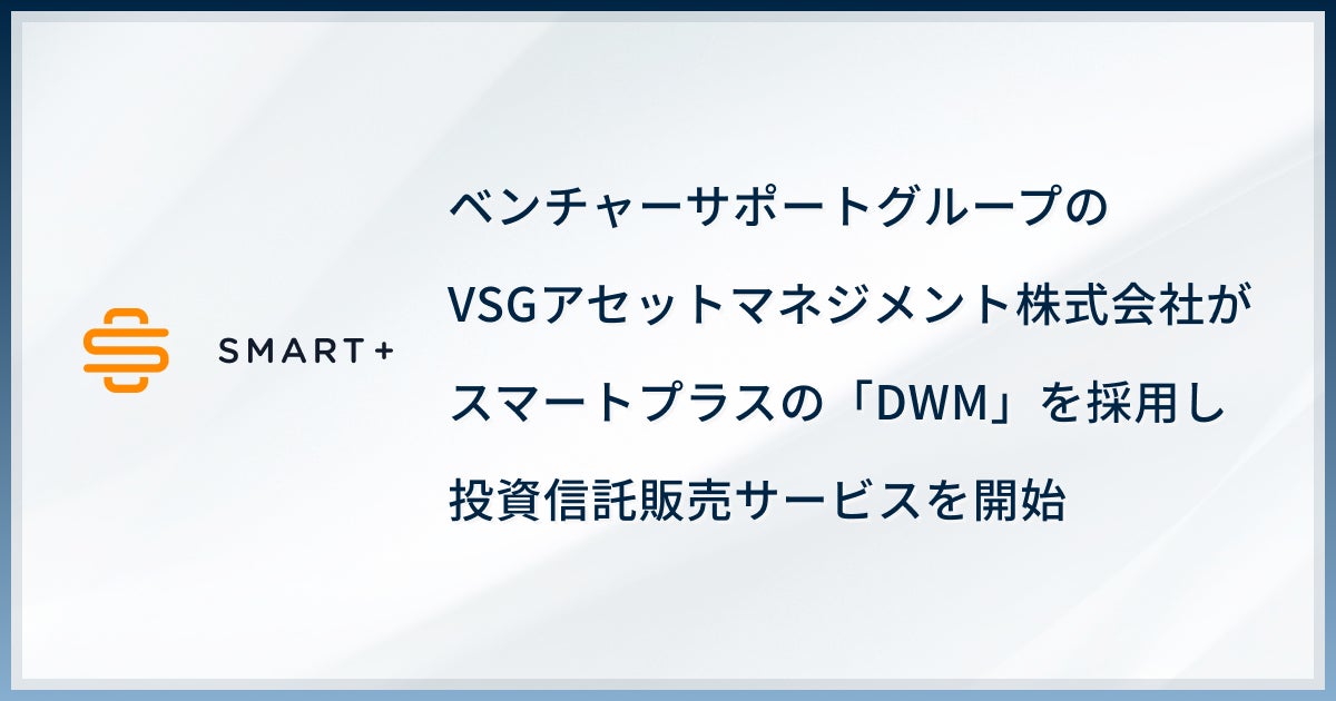 ベンチャーサポートグループのVSGアセットマネジメント株式会社がスマートプラスの「DWM」を採用し投資信託販売サービスを開始