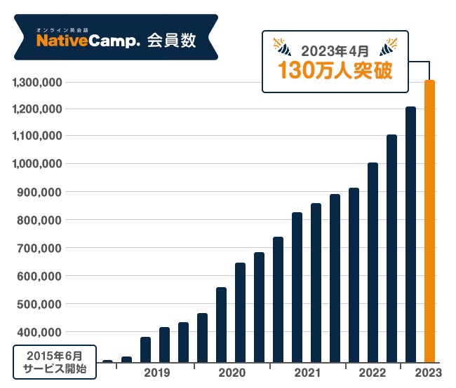 ネイティブスピーカーと回数無制限のオンライン英会話サービス「ネイティブキャンプ英会話」を展開する株式会社ネイティブキャンプ(東京都渋谷区 代表取締役:谷川国洋)は、会員数が130万人を突破したことをお知らせいたします。
