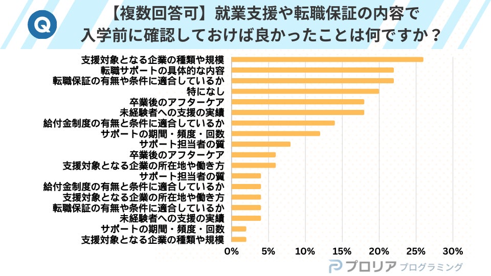 就業支援や転職保証の内容で入学前に確認しておけば良かったことは何ですか?