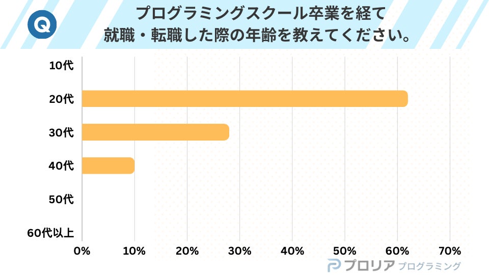 プログラミングスクール卒業後、就職・転職した際の年齢を教えてください。