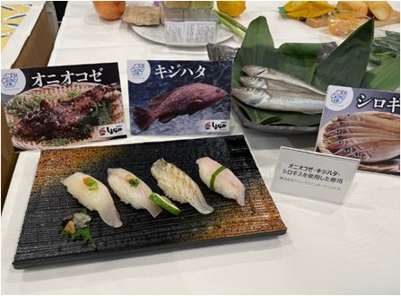 「しまなみ活動」対象魚3種(オニオコゼ・キジハタ・シロギス)を使用した寿司