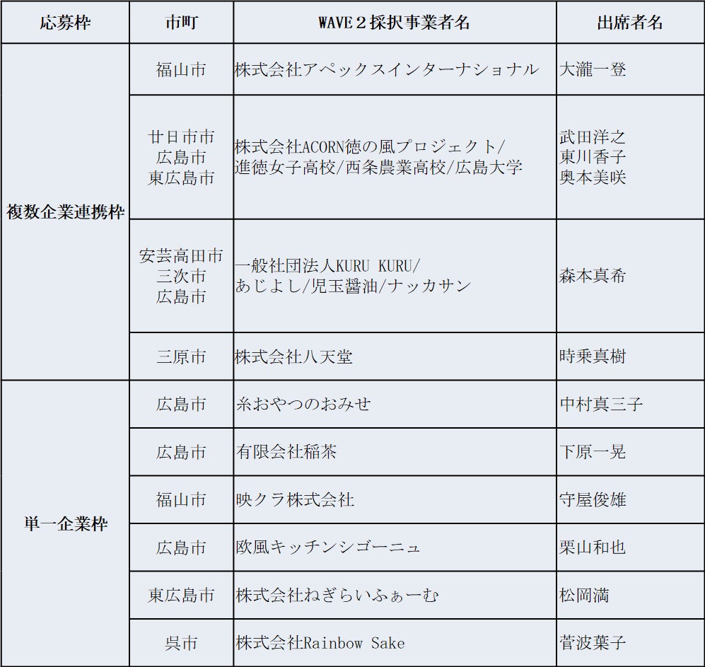 WAVE2採択10事業者(詳細は、以下のとおり)
