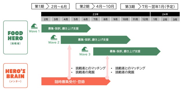 また、8月末をもって「HERO’s BRAIN」(HEROたちのポテンシャルを引き出し、共に汗をかく「メンター」)の募集も終了しました。今後、登録された「HERO’s BRAIN」 とWAVE3の採択者「HERO」とのマッチングを進め、食の磨き上げを支援します。