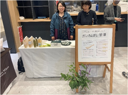 左後方から中村真三子(糸おやつのおみせ)、下原一晃(㈲稲茶)、守屋俊雄(映クラ㈱)、栗山和也(欧風キッチンシゴーニュ)、松岡満(㈱ねぎらいふぁーむ)、菅波葉子(㈱Rainbow Sake)