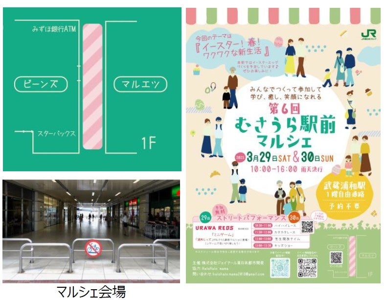2025年3月29日(土)・30日(日)新年度を迎えるにあたり、主に武蔵浦和で活動されているHaloHalo mamaと連携し第6回むさうら駅前マルシェを開催いたします。テーマは「イースター!春!ワクワクな新生活」。ワークショップや物販、飲食ブースに加え、ストリートパフォーマンスなど多彩な企画をご用意しております。今回のむさうら駅前マルシェは春の彩りと新しい始まりを祝う絶好の機会です。