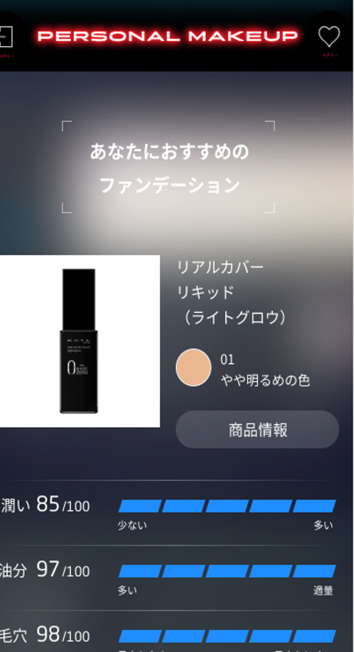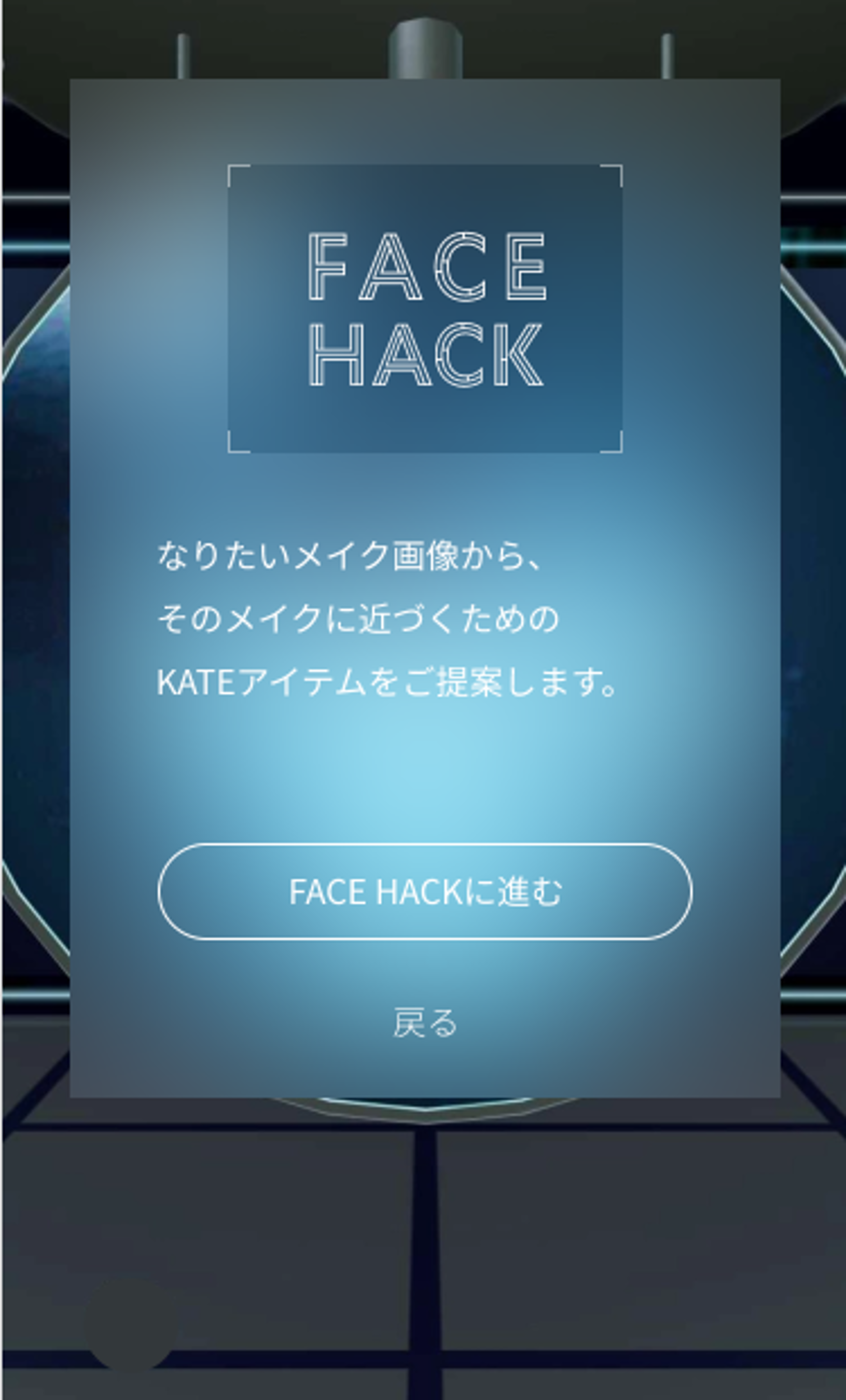 体験者の顔をAI分析し、KATEのおすすめアイテムや、KATE独自のメソッドによるメイクアップ術を提案します。