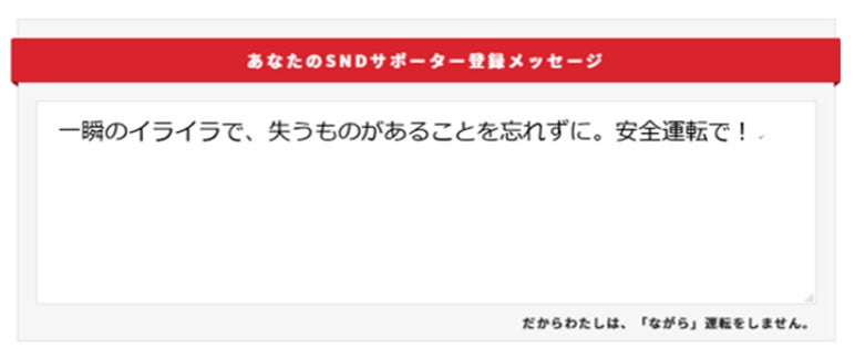 SNDプロジェクトHP「サポーター登録」ページ よりキャンペーン参加タブ及び参加テーマを選択のうえ、メッセージをお送りください。