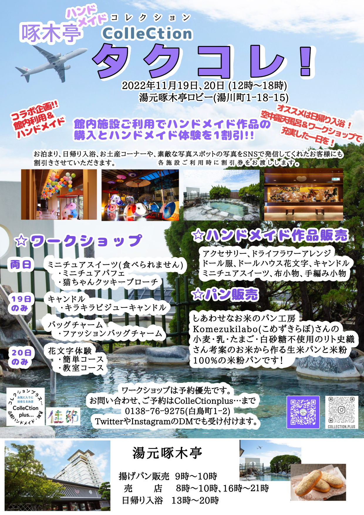 【啄木亭ハンドメイドコレクション・タクコレ!】の開催も決定。