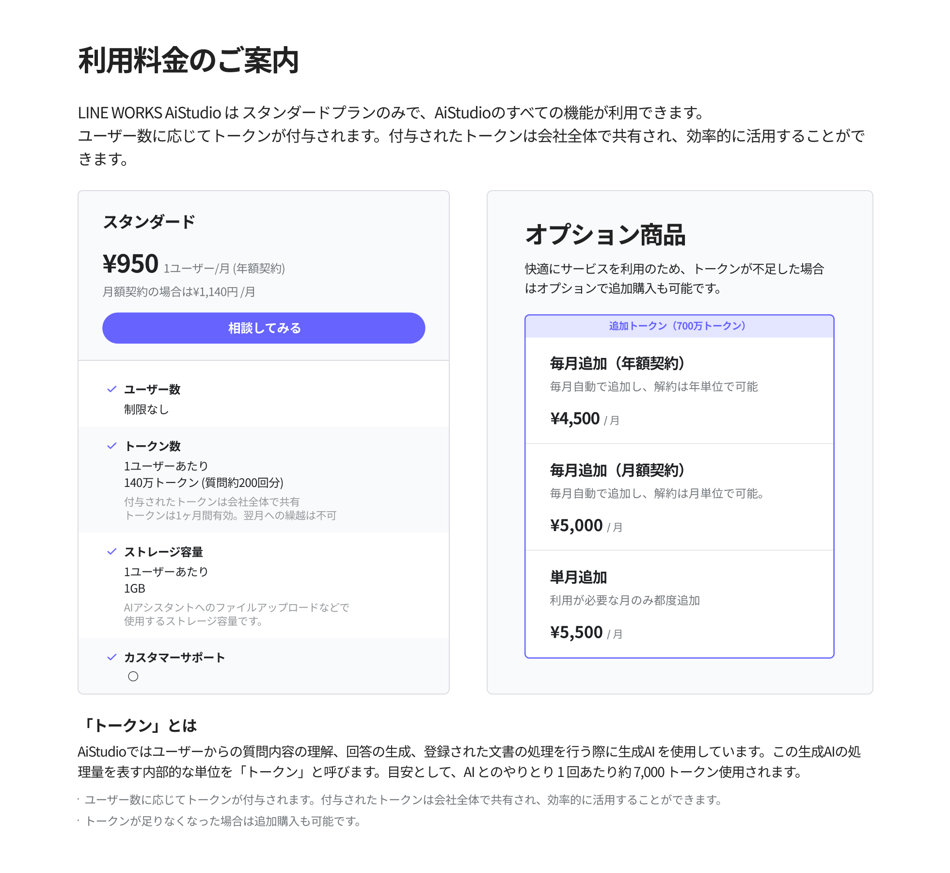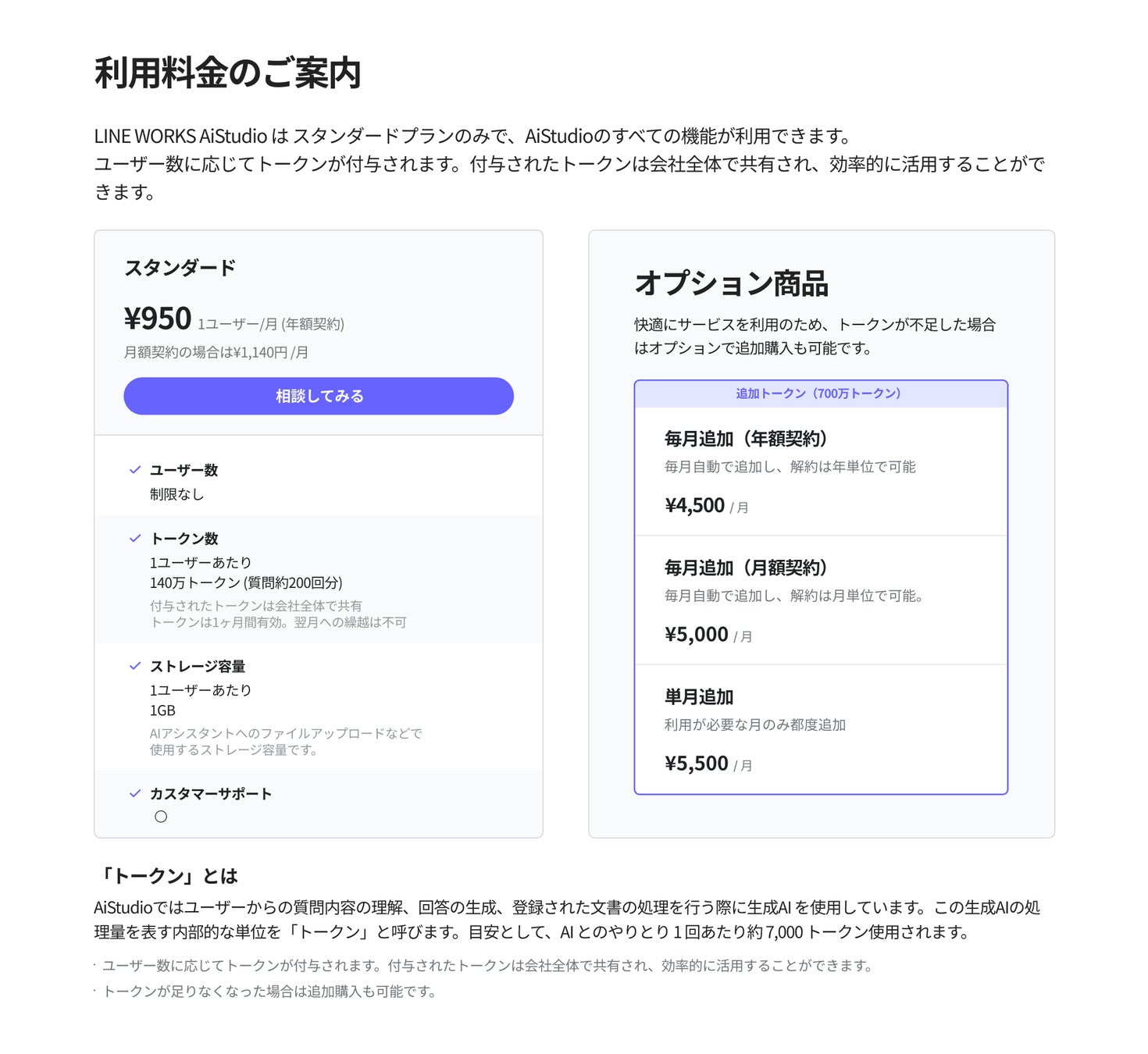 1ユーザーあたり月額950円(年額契約時)から利用可能。初期投資を抑えつつ、ドメイン単位でAI活用を始められる手軽なモデルです。
