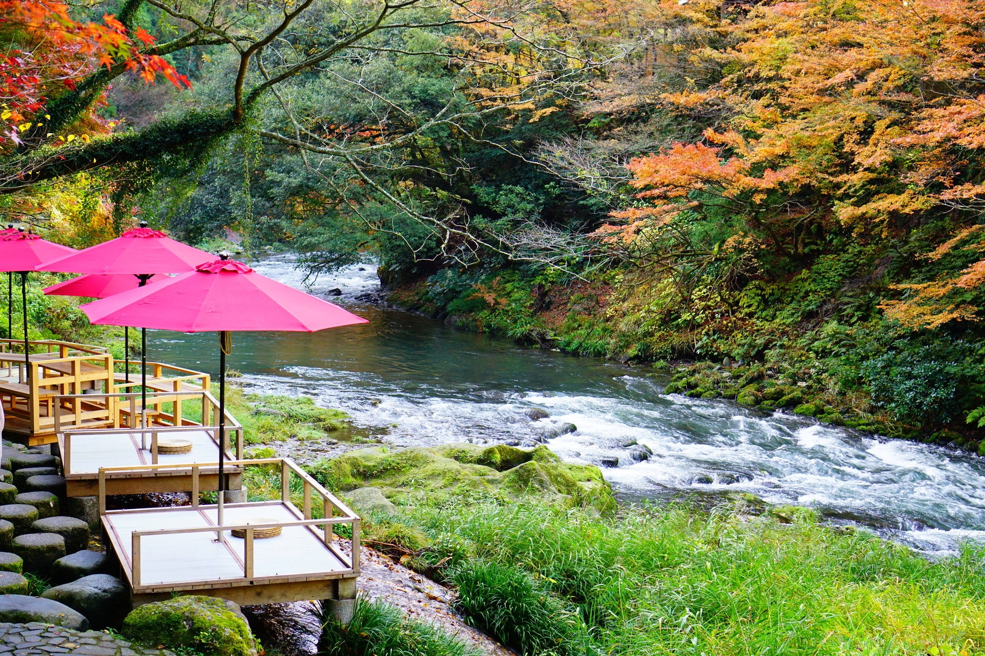 3位の石川県「山中温泉」は、開湯から1300年の歴史を持ち、鶴仙渓沿いに多くの旅館が並ぶ北陸随一の温泉地の一つです。鶴仙渓の遊歩道散策や、旅館の露天風呂から四季折々の渓谷美を堪能でき、伝統工芸の山中漆器や芸妓の舞など、様々な文化も楽しめます。ビュッフェスタイルの食事や館内アクティビティが楽しめる宿泊施設が開業するなど新たな話題でも注目を集め、前年比では特に子ども連れ利用が伸びをけん引しています。