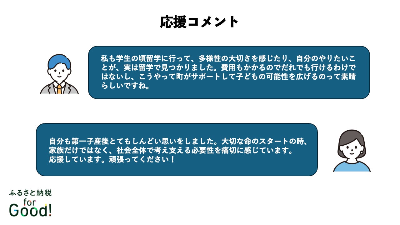 通常、返礼品にかかる費用は約3割といわれていますが、「返礼品なし」を選択することでも事業資金に充てることが可能です。返礼品を受け取るのではなく、プロジェクトにより多くの資金を充ててほしいという共感が得られたことがわかりました。
