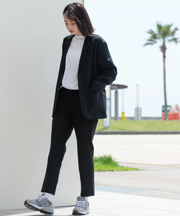 ■軽量性・ストレッチ性・撥水性といった着用時の快適性を高める為の機能を備えたセットアップ。ユニセックスに使えるのもポイント!