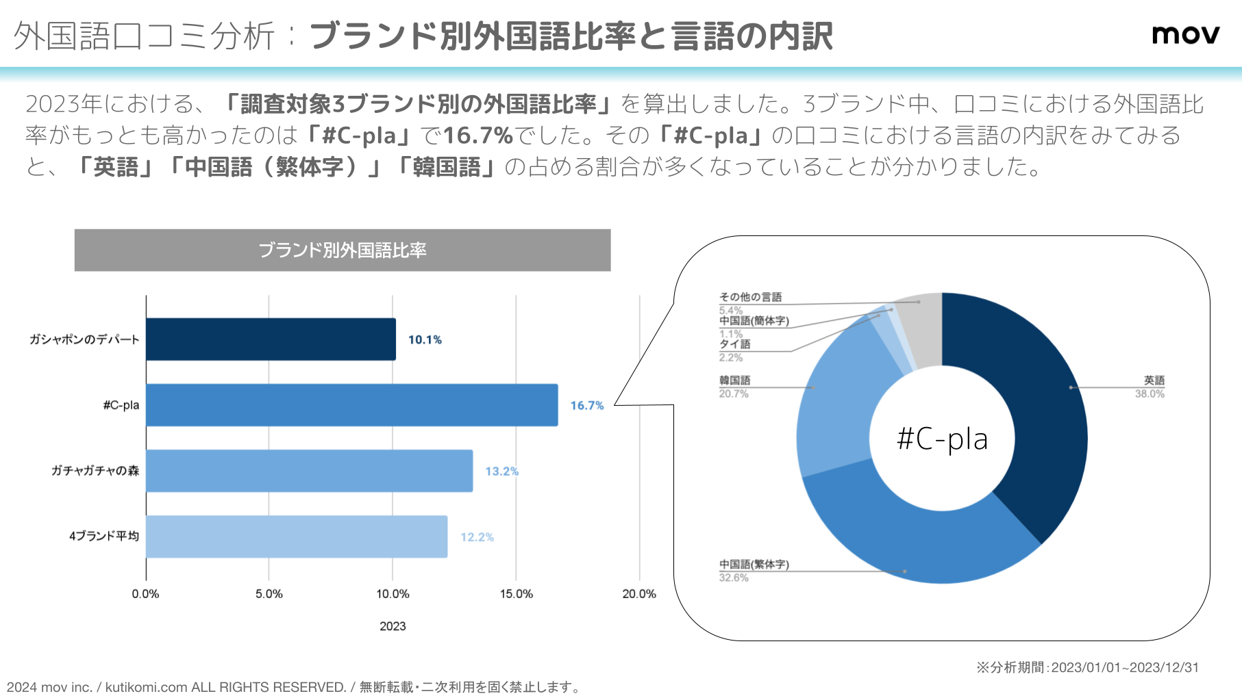 ■ 2023年は口コミの外国語比率が急増、もっとも外国語比率が高かったブランドは「#C-pla」で16.7%