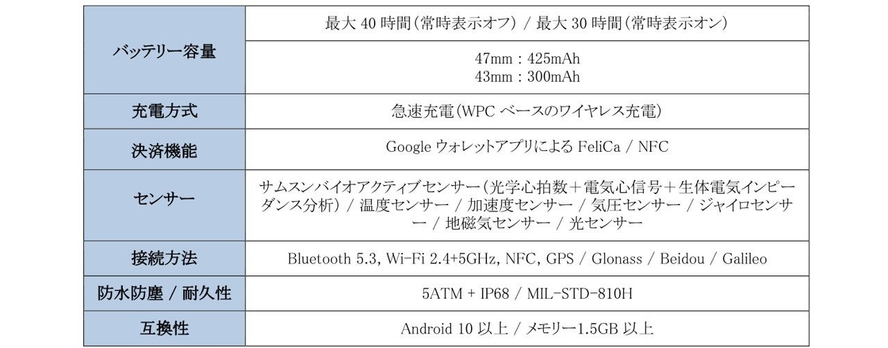<主な仕様 : 「Galaxy Watch6 Classic」>