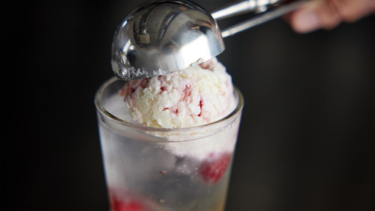 トロピカルで甘やか、バラのようなニュアンスをもつライチと、マスカットと表現される甘くフルーティーに香るエルダーフラワーを組み合わせた、エキゾチックな味わいをたのしめる新登場のコーディアルシロップ。フローズンヨーグルトでつくるトッピングのアイスには、ラズベリーのジャムを混ぜ込んで、甘酸っぱさと華やかさをプラス。