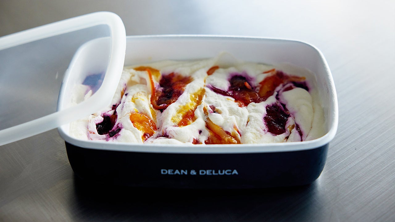ジェラテリアのショーケースに並んでいるような、目にも華やかなマーブルアイスをつくってみませんか。材料は、生クリームとヨーグルトにお好みのジャム。さっぱりとした口当たりのヨーグルトアイスがジャムのおいしさを引き立てる、ホーローコンテナーを使ったレシピをご紹介します。