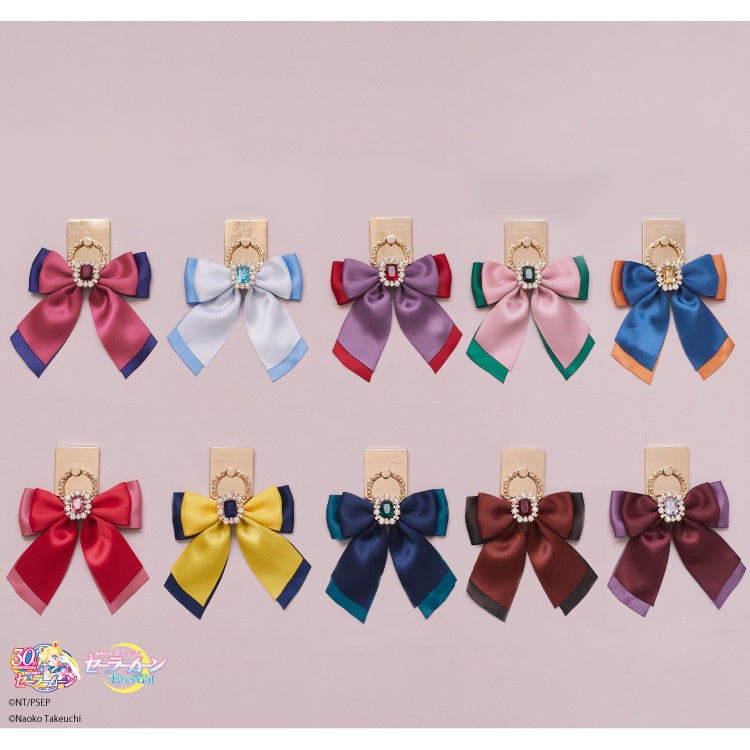 なかでも一押しはスマホリングです。コスチュームカラーに合わせて2色のリボンを重ねることで、 Maison de FLEURの定番アイテムが特別仕様に。セーラー10戦士のカラーバリエーションを取り揃えていますので、シンプルなケースに付けるだけで、スマホを大人可愛くアップデートできます。