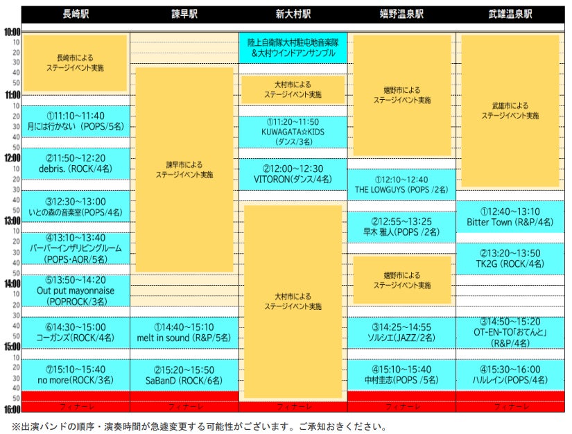 2024年9月21日(土)に西九州新幹線5駅で開催される「GO LIVE」のタイムスケジュールが以下のとおり決定しました!