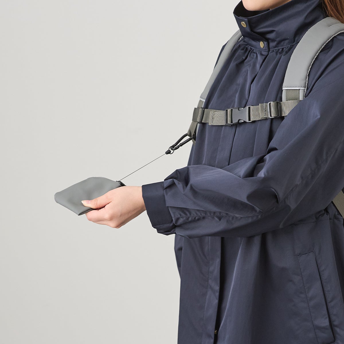 リュックを背負ったまま駅の改札もレジの会計もスムーズ。ポーチ内部にはキーストラップが付いて