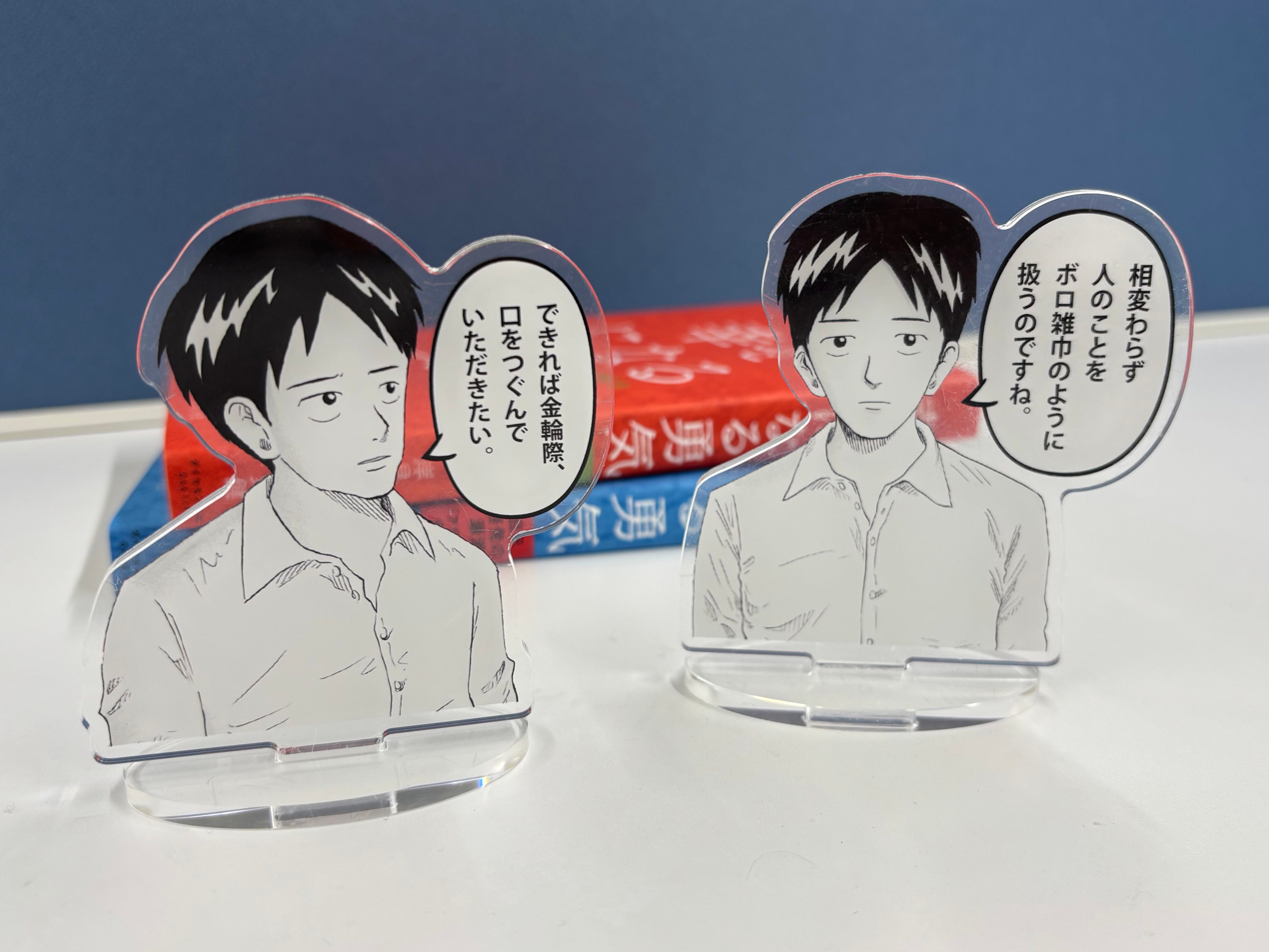 書籍の登場人物である青年の“暴言”をデザインしたアクリルスタンド(=暴言アクスタ)が特典となる『勇気の二部作セット』の販売が決定しました。暴言アクスタは全8種類。『嫌われる勇気』『幸せになる勇気』の2冊から厳選した「青年の暴言」と「哲人の言葉」をあしらった、貴重なグッズです。セットは5月下旬以降、一部店舗にて数量限定で販売します。