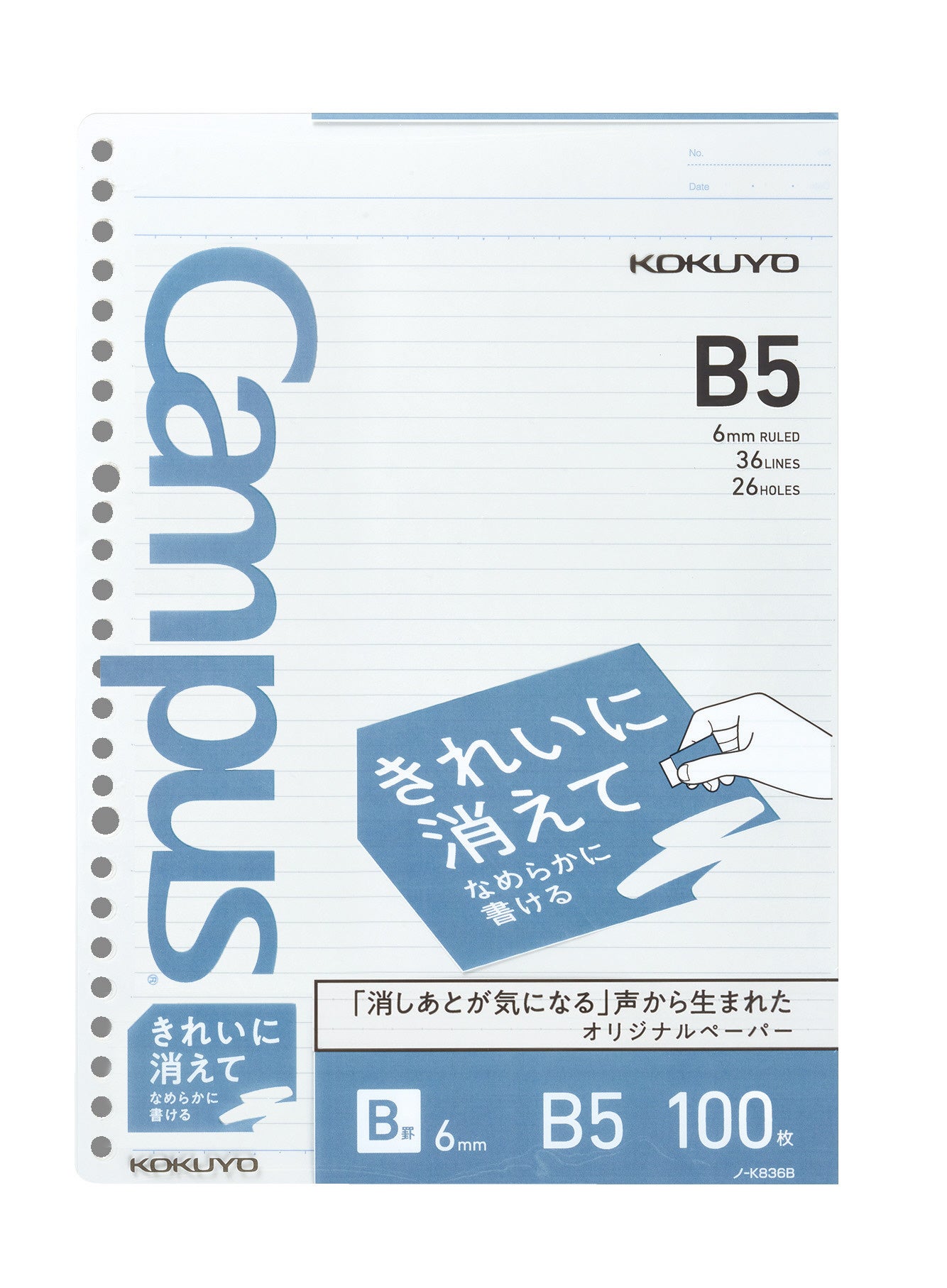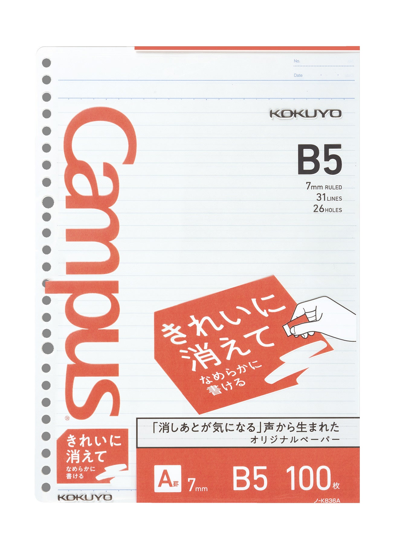 コクヨ株式会社(本社:大阪市/社長:黒田 英邦)は、消しゴムで消した際の芯あとが残りにくく、なめらかな書き心地のコクヨオリジナル原紙を使った「きれいに消えてなめらかに書けるルーズリーフ」を11月9日(水)より発売します。