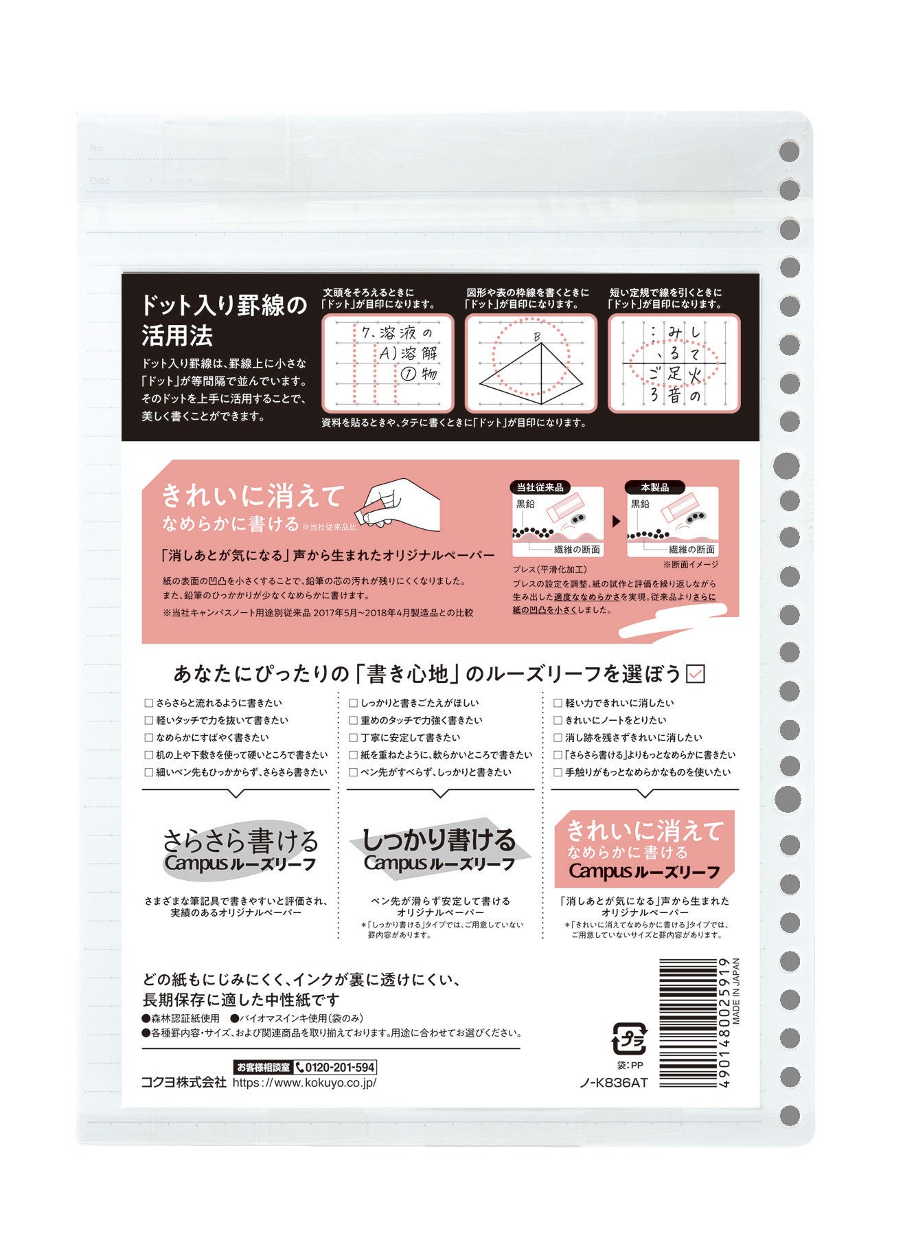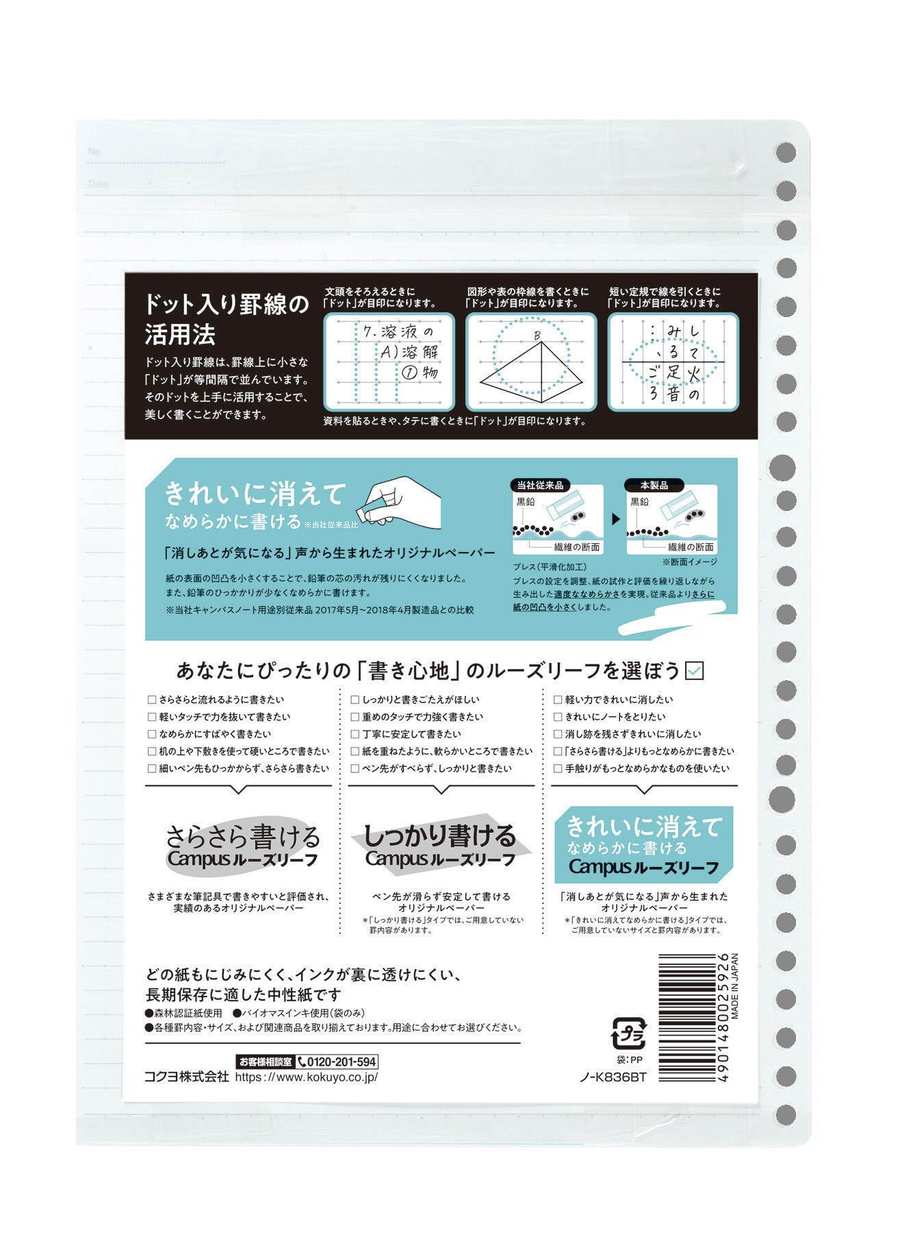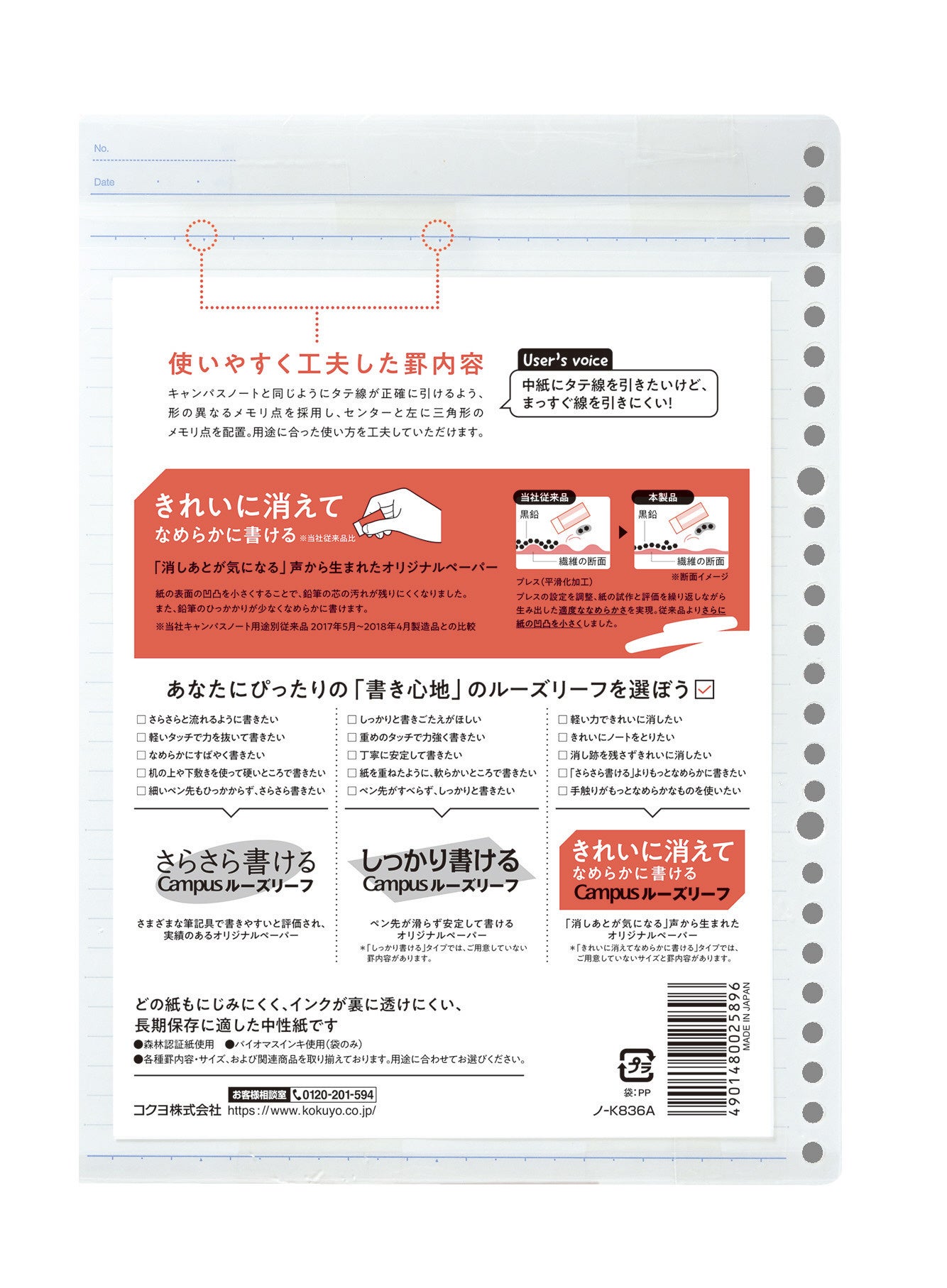 「きれいに消えてなめらかに書けるルーズリーフ」の拡大図