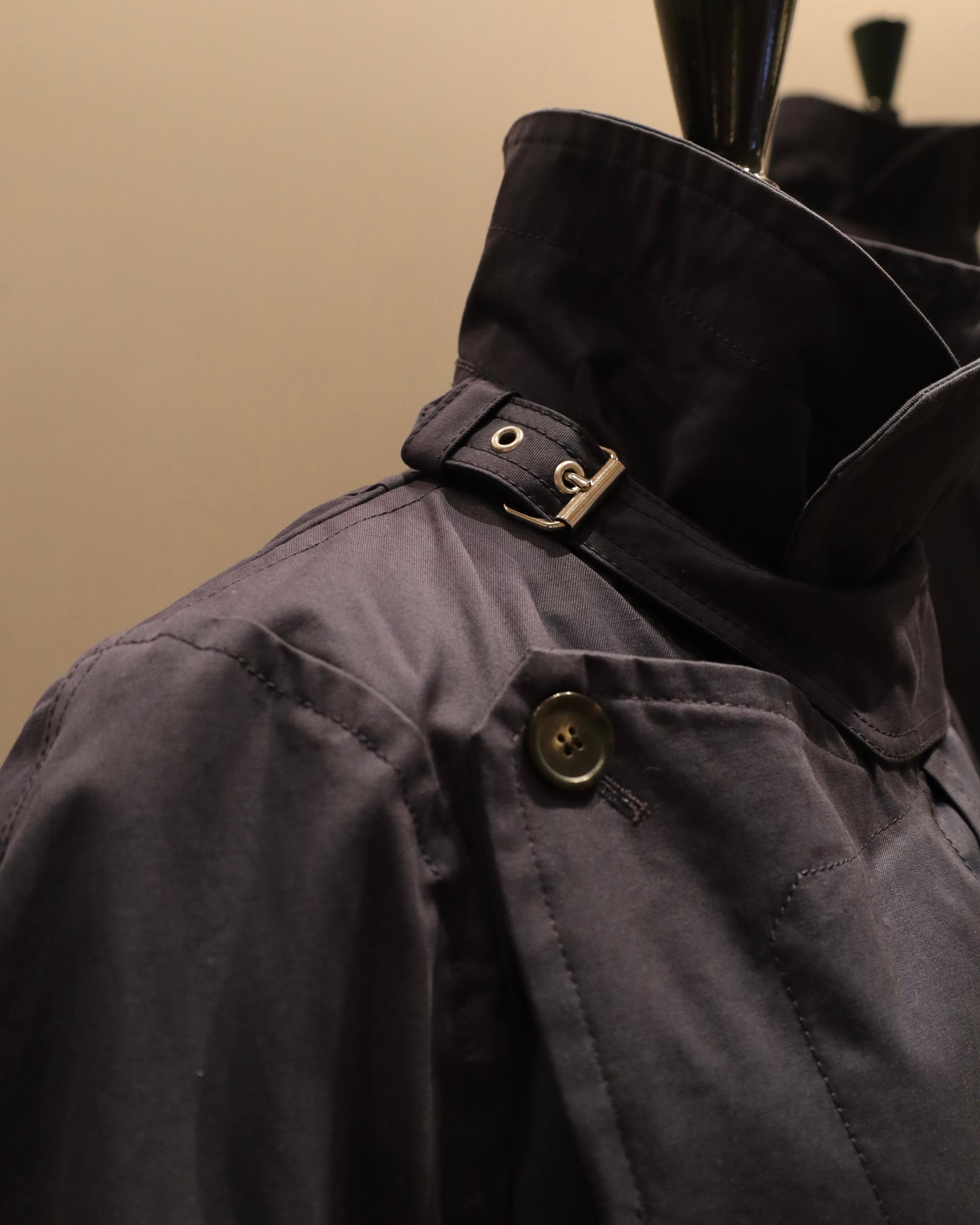 今回の別注ではブランドがインラインで展開しているM.Y IMPERコートをベースにデザイナー自らがセレクトしたコットン100%のネイビー地を用いて別注しました。