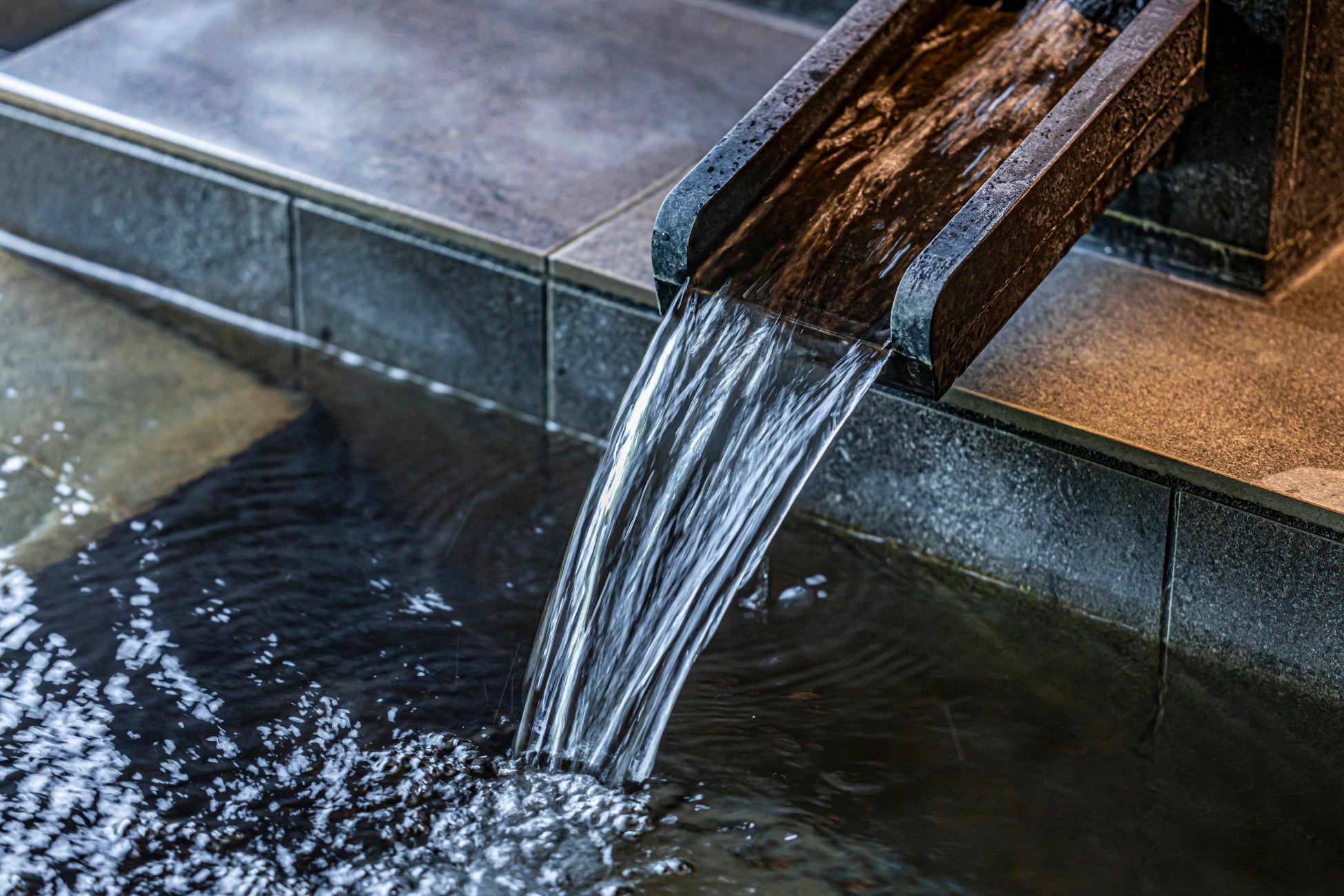 敷地内から湧き出る天然温泉を各客室に完備しておりますのでゆったりとお寛ぎいただけます。泉質は鉄分を含む若干黄色がかった塩化物強塩泉となり、湯冷めしにくいのが特徴です。さらに、天然の化粧水と称されるメタケイ酸は基準値の倍以上の含有率なので美肌・保湿効果に優れています。また、敷地内に源泉があることにより、劣化することなく客室まで配湯しております。