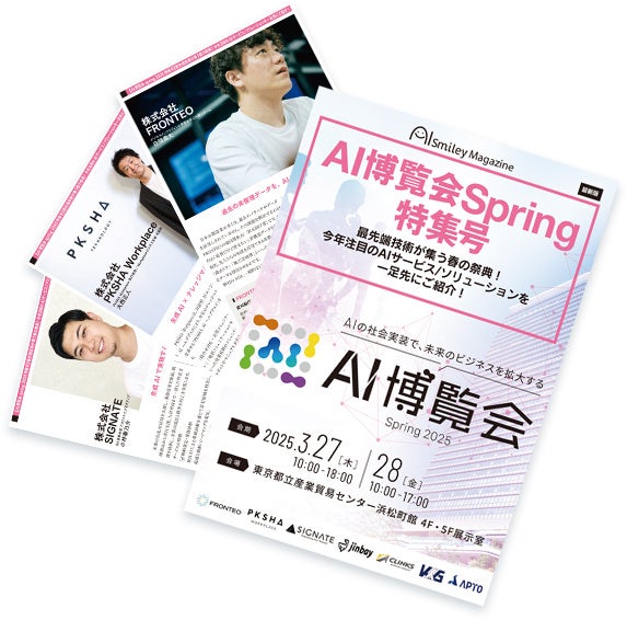 国内最大級のAIポータルメディア『AIsmiley』を運営する株式会社アイスマイリー(東京都渋谷区、代表取締役:板羽晃司)は、AI博覧会 Spring 2025を3月27日(木)、3月28日(金)に開催するにあたり、出展企業・サービスの事前予習ができる【AI博覧会Spring2025特集号】を公開しました。