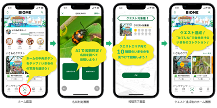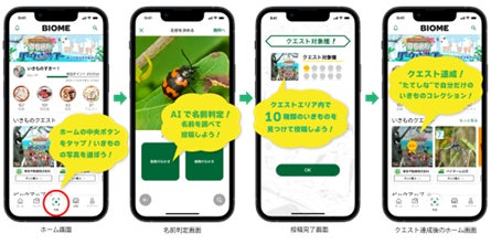 ※2 「クエスト」は、Biome に実装されている独自のゲーム機能で、動植物の写真を撮影・投稿することで一定の条件を満たすと達成できます。