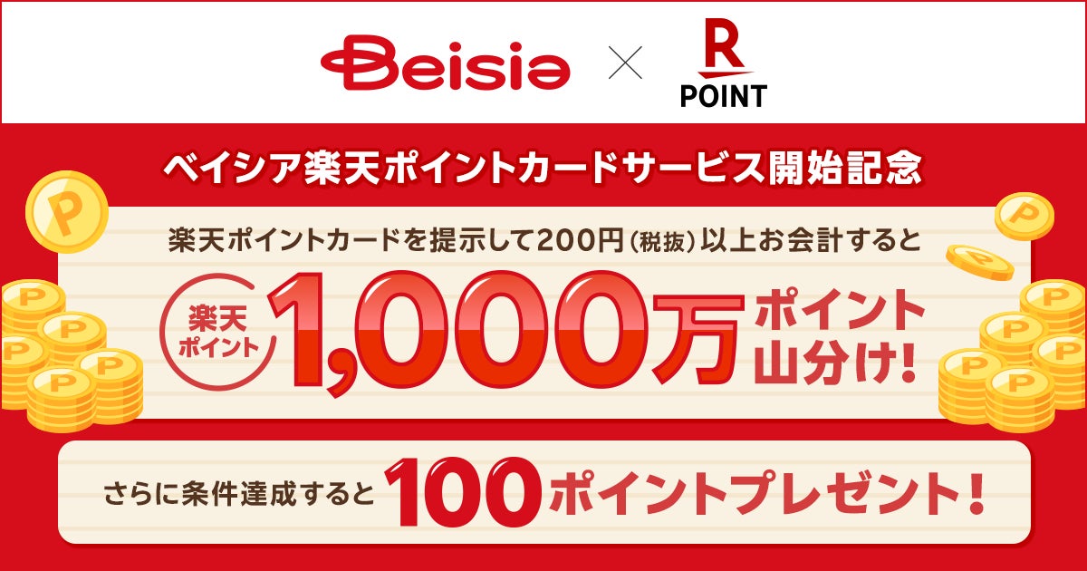 株式会社ベイシア(以下「ベイシア」)と楽天ペイメント株式会社(以下「楽天ペイメント」)は、ベイシアが運営するスーパーマーケット「ベイシア」において、2024年7月23日(火)より共通ポイントサービス「楽天ポイントカード」が利用可能になることをお知らせします(注1)。