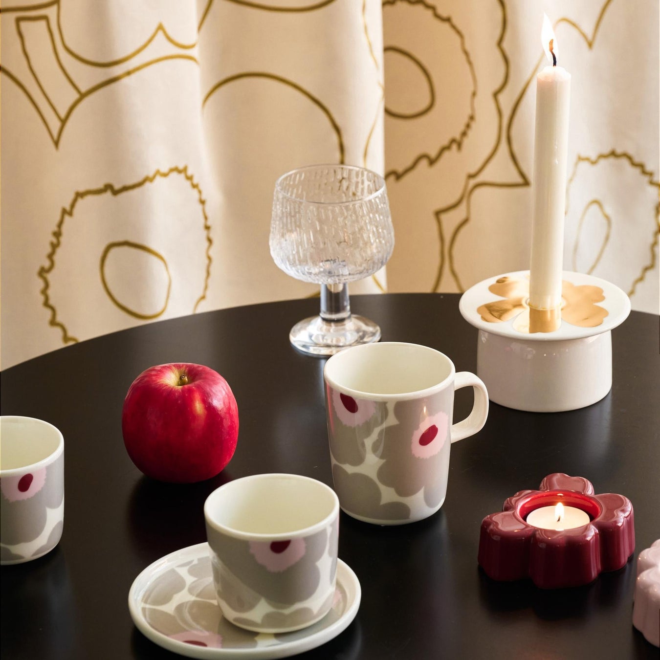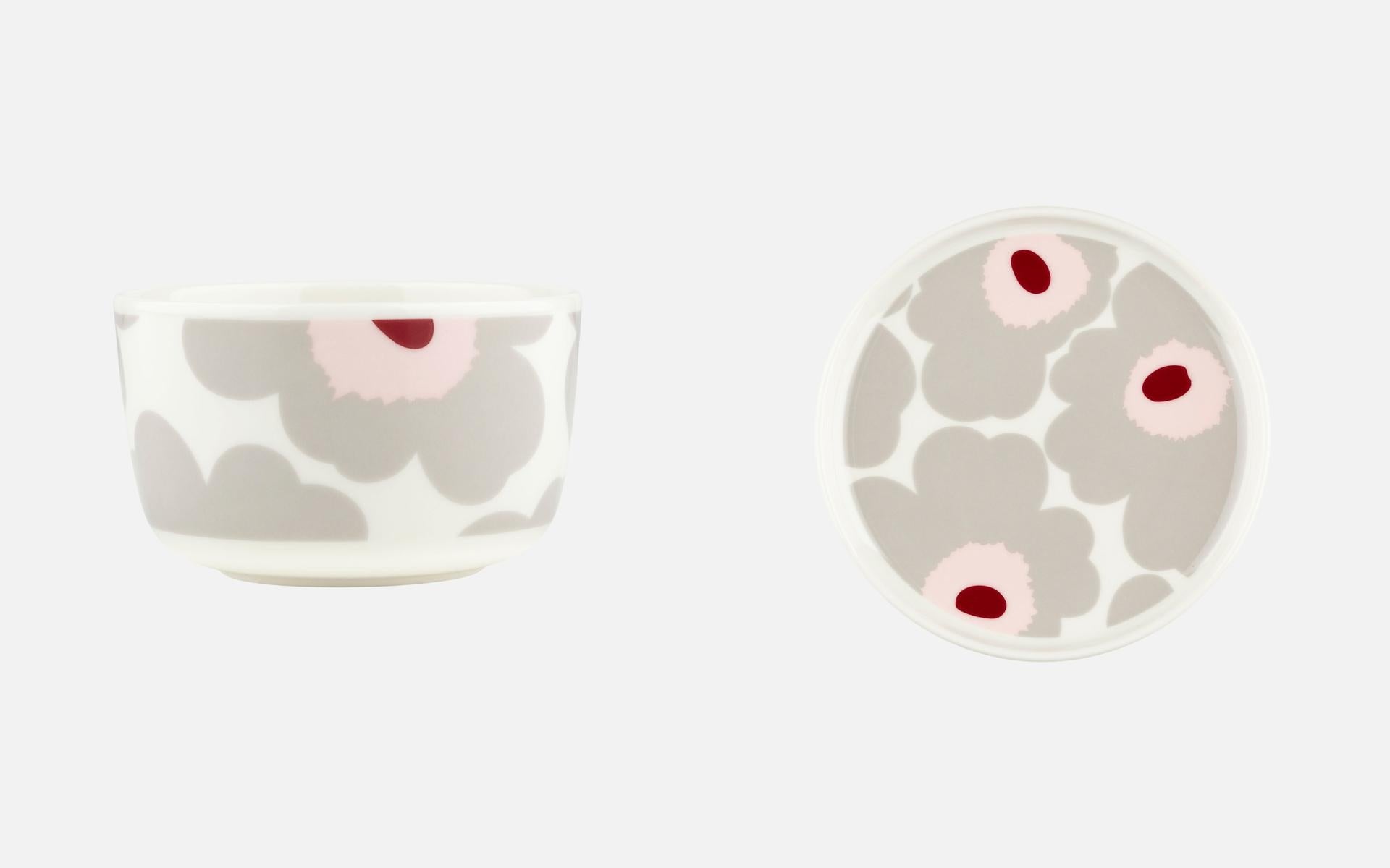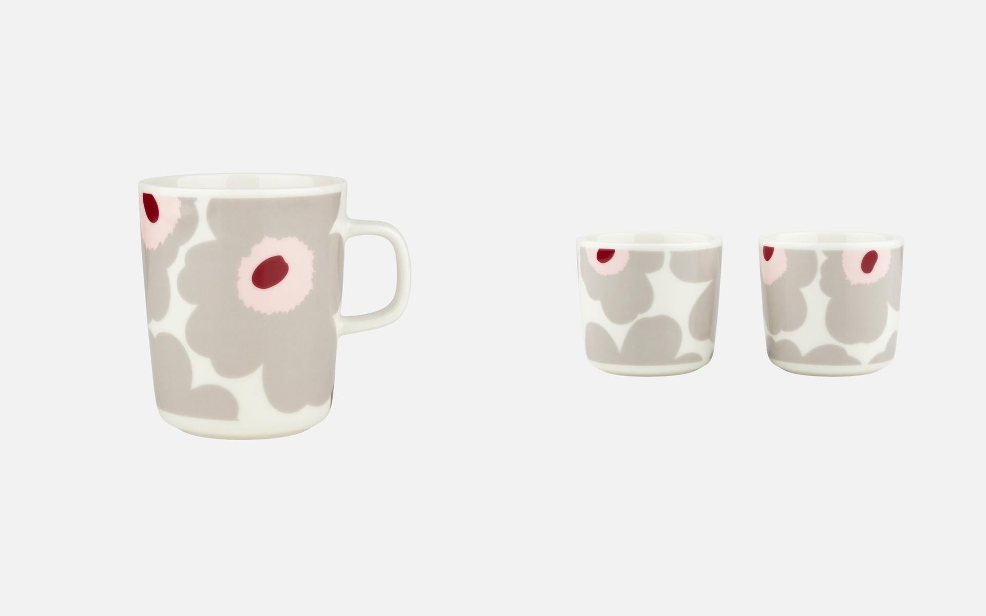 [マリメッコ]ライトグレー×ピンクの柔らかなカラーリングに色付いたUnikkoホームコレクションが日本限定で登場。