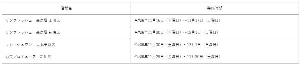 次の店舗において実施します。