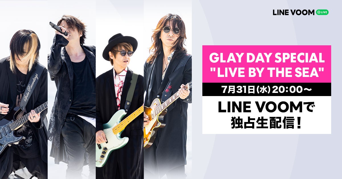 本ライブ配信では、「GLAY DAY SPECIAL "LIVE BY THE SEA"」と題しGLAYの人気曲や、未発表の新曲で構成された楽曲の演奏を行い、その模様を7月31日(水)夜8時より「LINE VOOM」にて生配信します。今回のライブも過去行った、故郷函館の恵山火口や、東京湾を航行するクルーズ船上など、普段のコンサート会場とは違った特別な環境でのライブ配信となります。