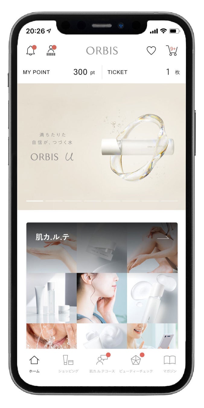 ブランド体験を通じてよりここちよい毎日をお届けしたいという想いから、リブランディングを開始した2018年6月より、ECや店舗のポイント機能に加えて手軽に読める美容に関する記事コンテンツも配信をするなど、幅広いサービスを提供する「ORBISアプリ」を導入。ORBISアプリ内サービスにAI解析による分析コンテンツも拡充した結果、460万ダウンロード数※1と多くのお客様にご利用いただいており、アプリを核にCX戦略を加速し、新たな顧客体験価値を創出してきました。より一層のCRMの進化を目指していくなかで、店舗のビューティーアドバイザー(以下:BA)の接客経験や口コミより「自分の肌を理解して、肌悩みに合ったお手入れをすることが難しい」「継続できない」「悩みが解決できない」という課題を抱えたお客様が多くいることを認識。お客様個別の肌悩みに寄り添う連続的・継続的なコミュニケーションの実現を目指し、お客様の肌悩みに合わせて美容の習慣をサポートする、ORBISアプリ内サービス『肌カ.ル.テ』を開始します。『肌カ.ル.テ』は、商品のご購買の有無に関わらず、お客様の悩みに寄り添い、自分で「できる」ところまで伴走する、これまでにない美容伴走型のコミュニケーションプログラムです。さらに、「ORBISアプリ」の主要画面のUI等をリニューアルし、パーソナル分析、ショッピング、美容に関する読み物記事などをお客様がこれまで以上に楽しんでいただけるようになり、より使いやすくなりました。