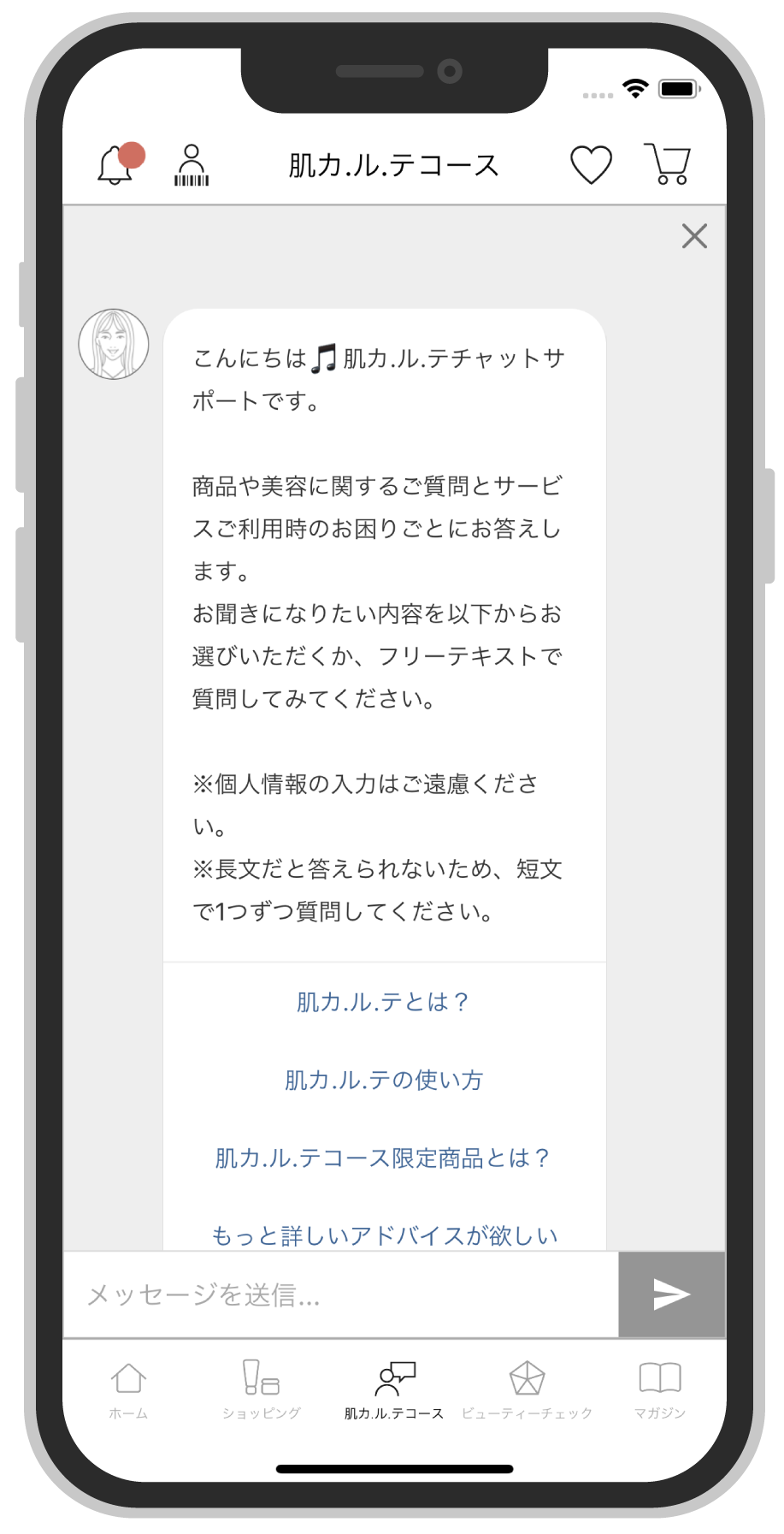 美容のプロに疑問や悩みをすぐに相談できる、“人肌感”のある有人チャット機能も新たに搭載