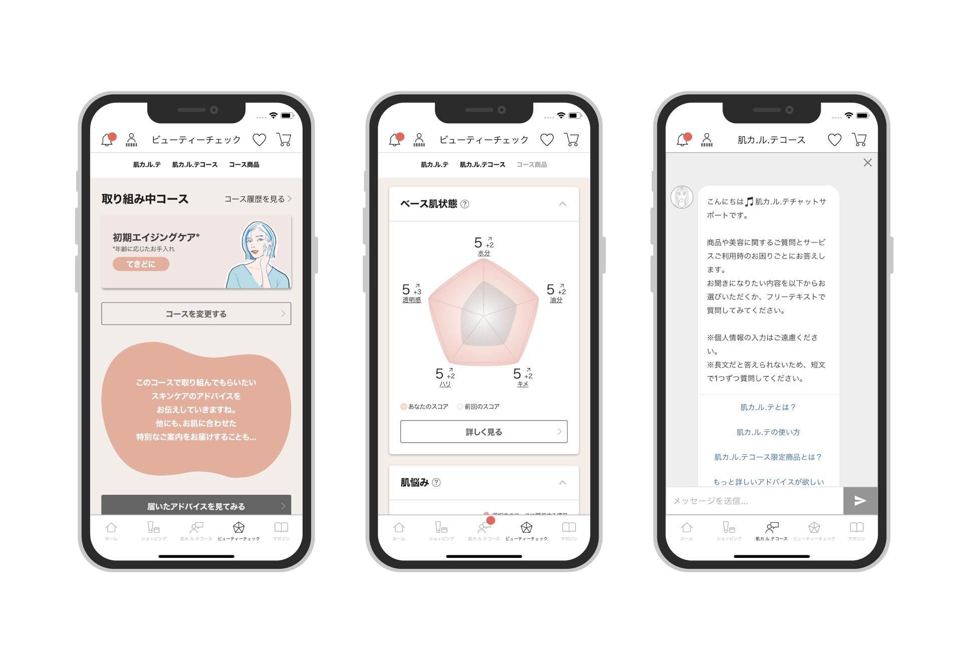 『肌カ.ル.テ』サービス内ではこれまで以上によりパーソラナイズされたデジタル接客が受けられる環境を整えました。