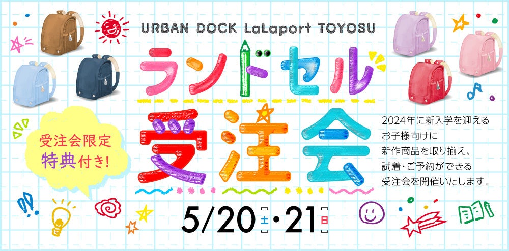 【三井ショッピングパーク アーバンドック ららぽーと豊洲】新入学を迎えるお子様へランドセル受注会、キャッシュバックキャンペーンを開催!