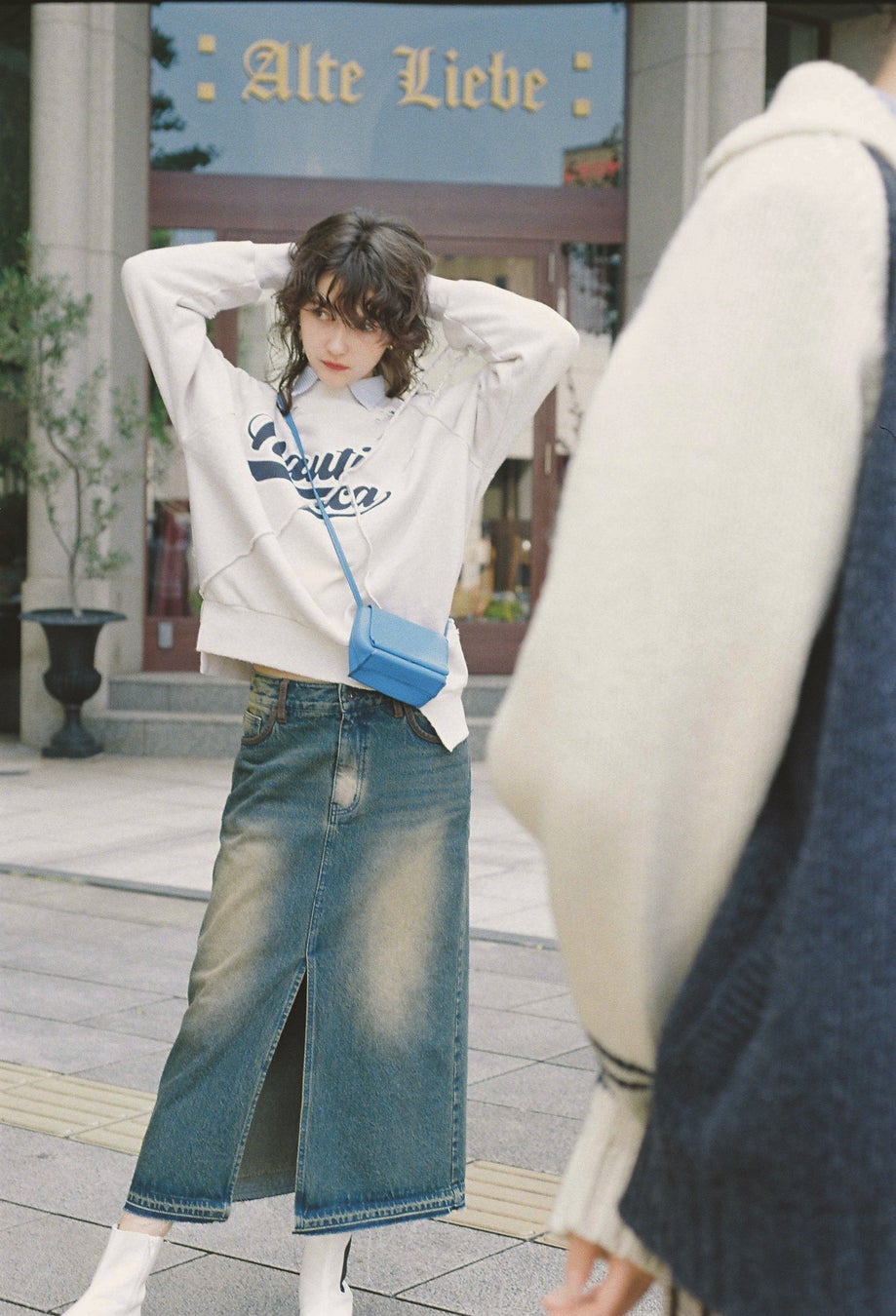 退色デニムロングスカート