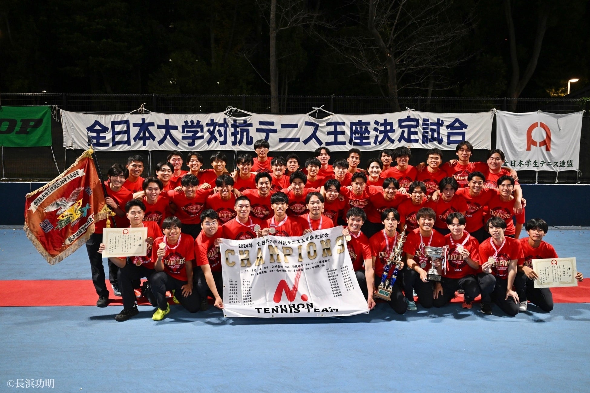 本学テニス部は、今年で創部75周年を迎え、全国でも歴史のある大学テニス部の一つとなっております。昨年の大学全国大会では、本学の選手が個人戦すべての種目で優勝し、団体戦においても優勝を果たすことができました。